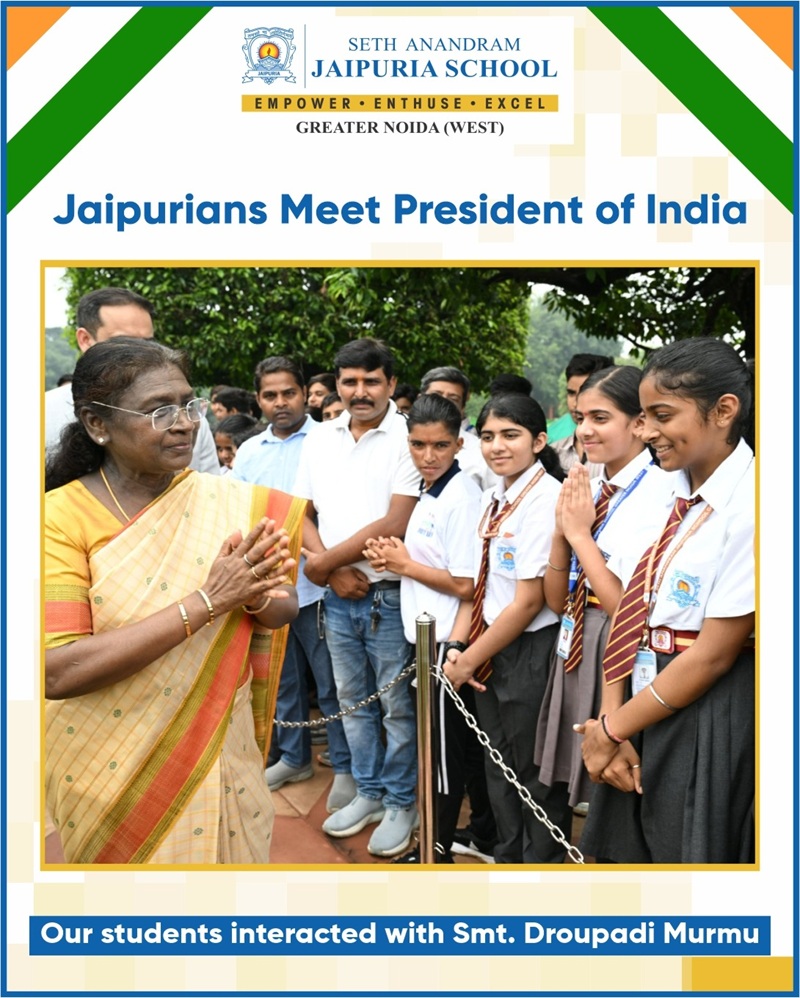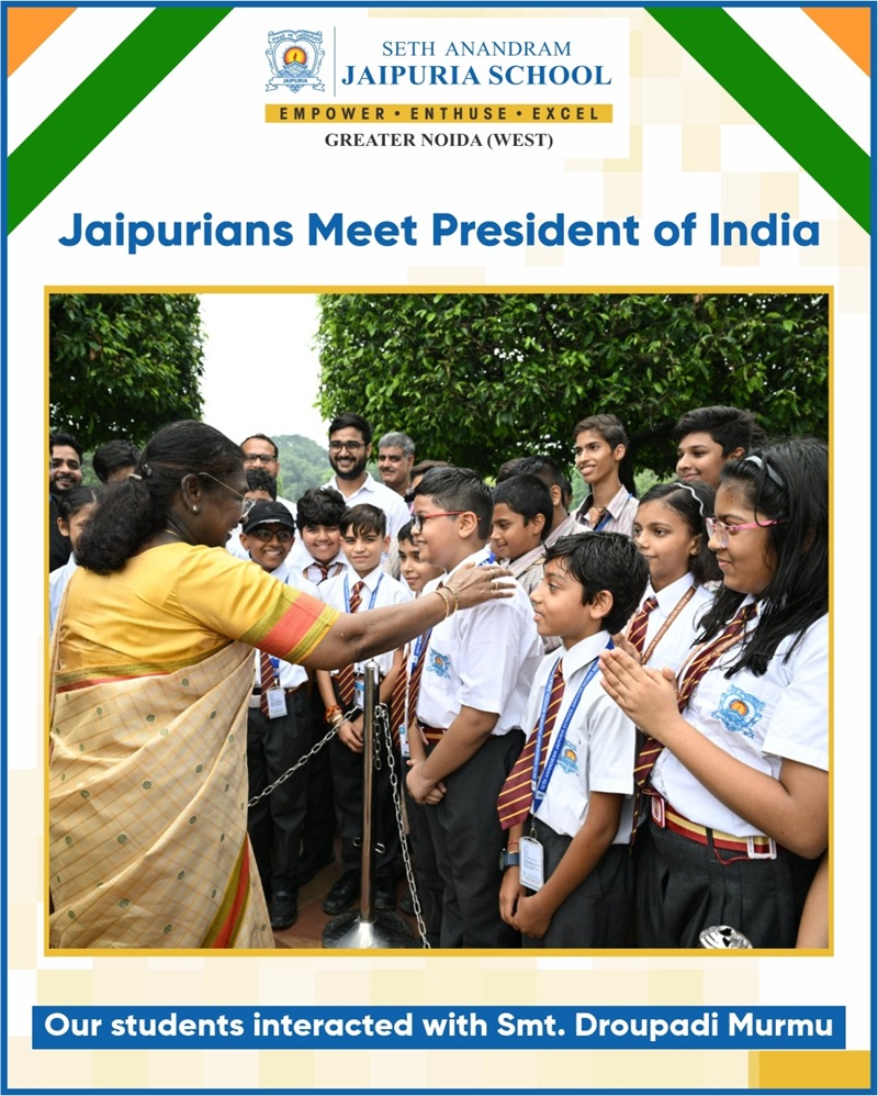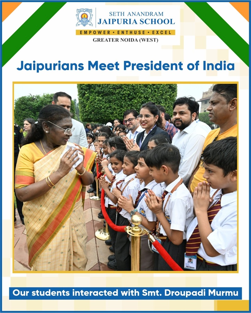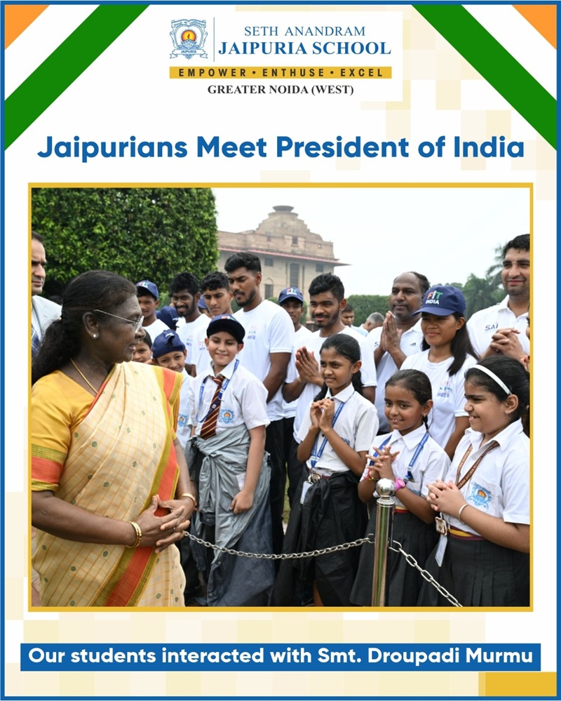 An incredibly proud moment for Seth Anandram Jaipuria School, Greater Noida (West), as our students had the rare honour of meeting and interacting with the Hon’ble President of India, Smt. Droupadi Murmu. This enriching experience not only inspired our young learners but also reinforced the values of leadership, humility, and service to the nation. Moments like these become lifelong memories, motivating our students to dream big and contribute meaningfully to society.